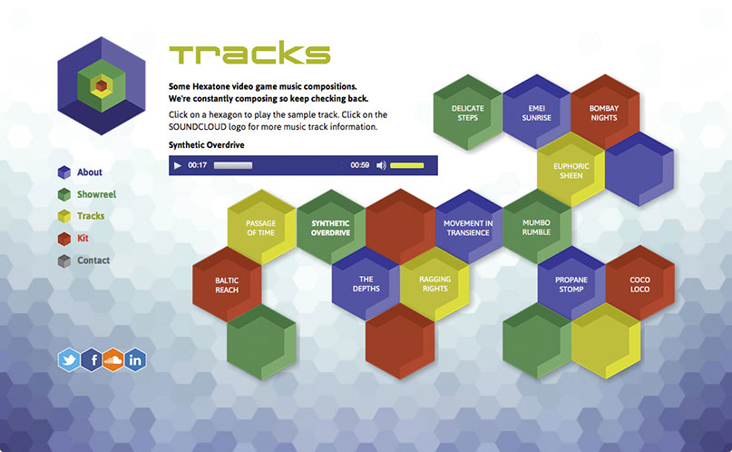 - It has a strong simple graphic style using hexagons based on the name Hexatone.